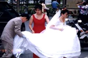 ここでは若い人たちの心を捉えている豪華な結婚披露宴と記念写真集を提供する商売についてみるとしよう。新婚カップルは多少既製品のみ選択させられている嫌いもないではないが、彼や彼女らの親が享受できなかった楽しみを満喫することができるようになっている。ゴールインに入るまでに彼や彼女らがが通うことのできるカラオケボックス、ダンスホール、レストランや24時間営業のコンビニストアは繁盛しているし、結婚式の演出をしてくれる産業とくに結婚撮影ビジネスが盛んに営業活動を展開している。